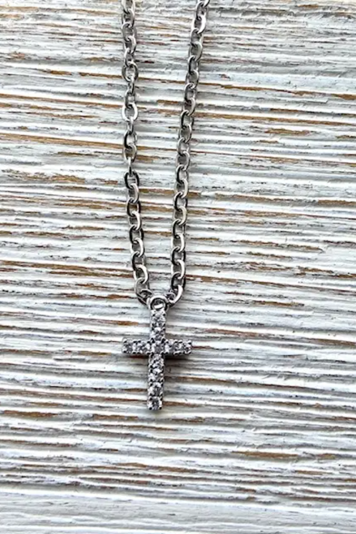 VB & Co Crystal Silver Cross Necklace