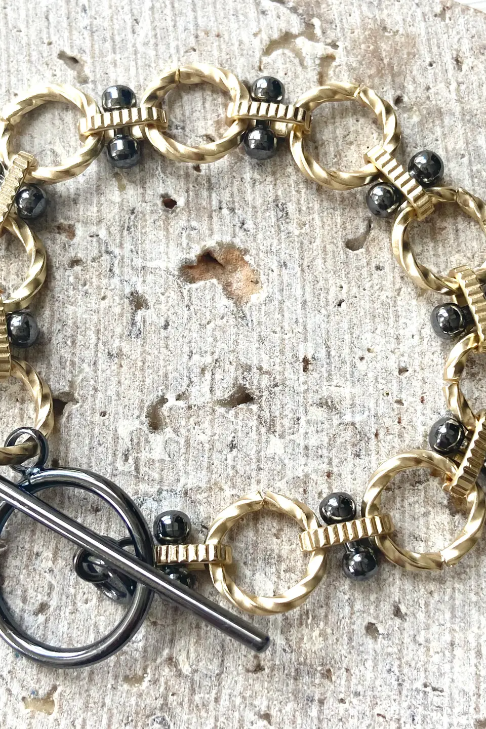 VB & Co Matte Gold Bracelet with gunmetal accents