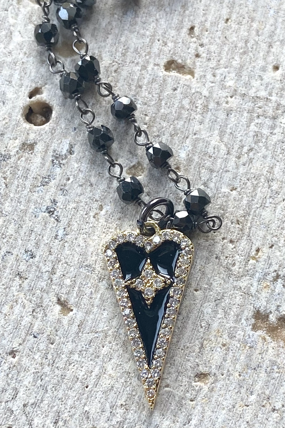 VB&CO Black Enamel Heart W/ Clear Crystals