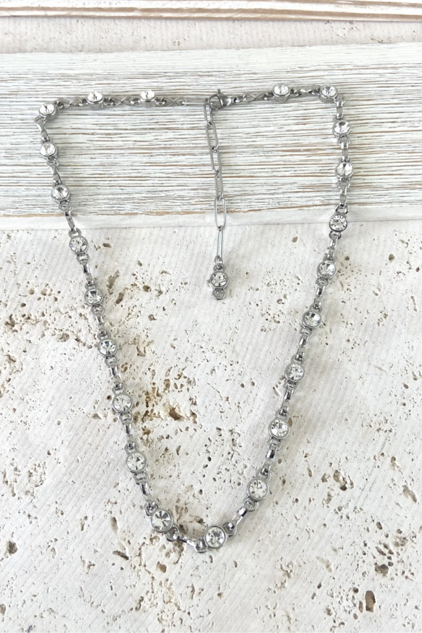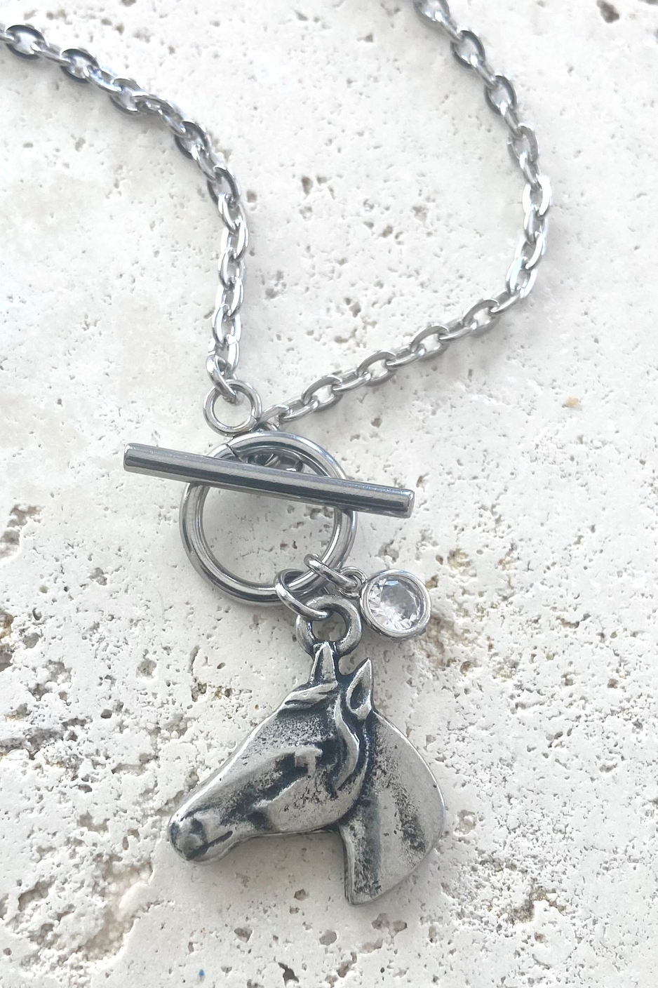 VB&CO Silver Equestrian Crystal Necklace