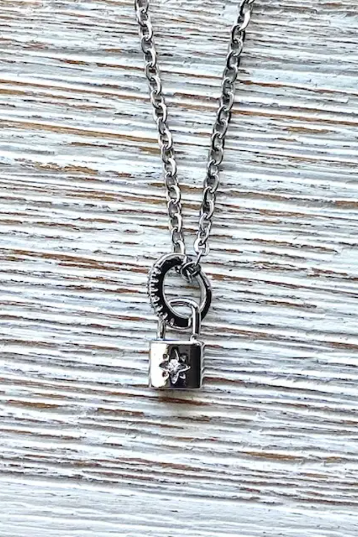 VB & Co Silver Dainty Crystal Lock Necklace