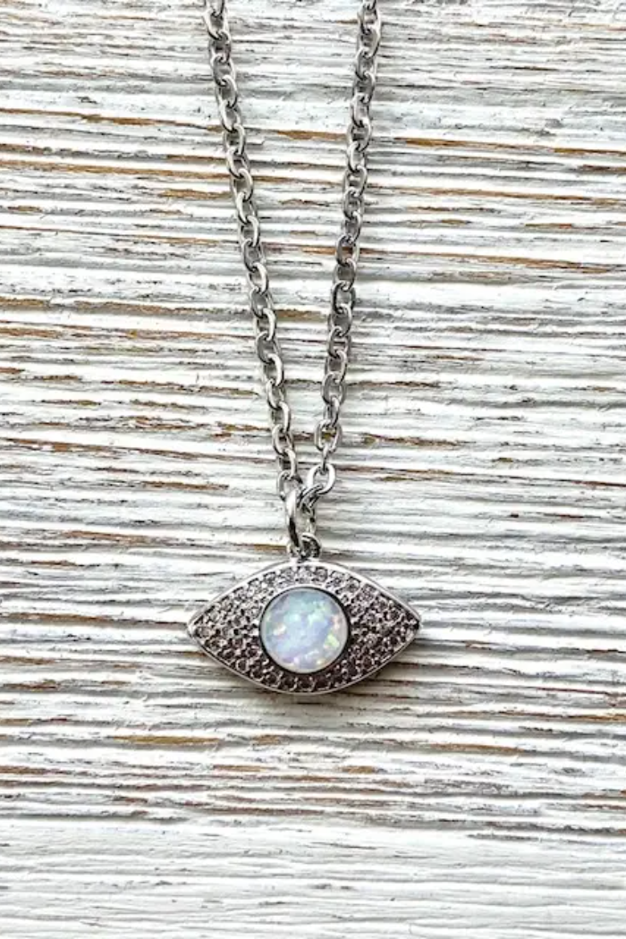 VB & Co Silver Dainty Evil Eye Opal Necklace