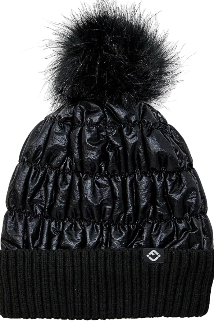 Funky Junque Black Puffer Faux Fur Pom Beanie