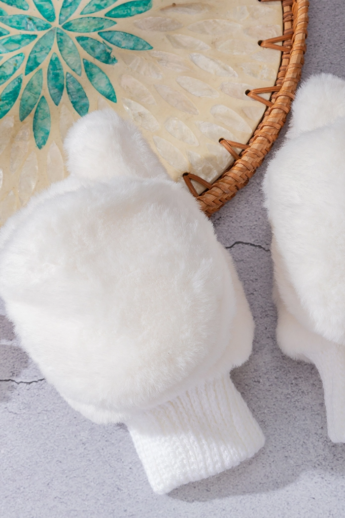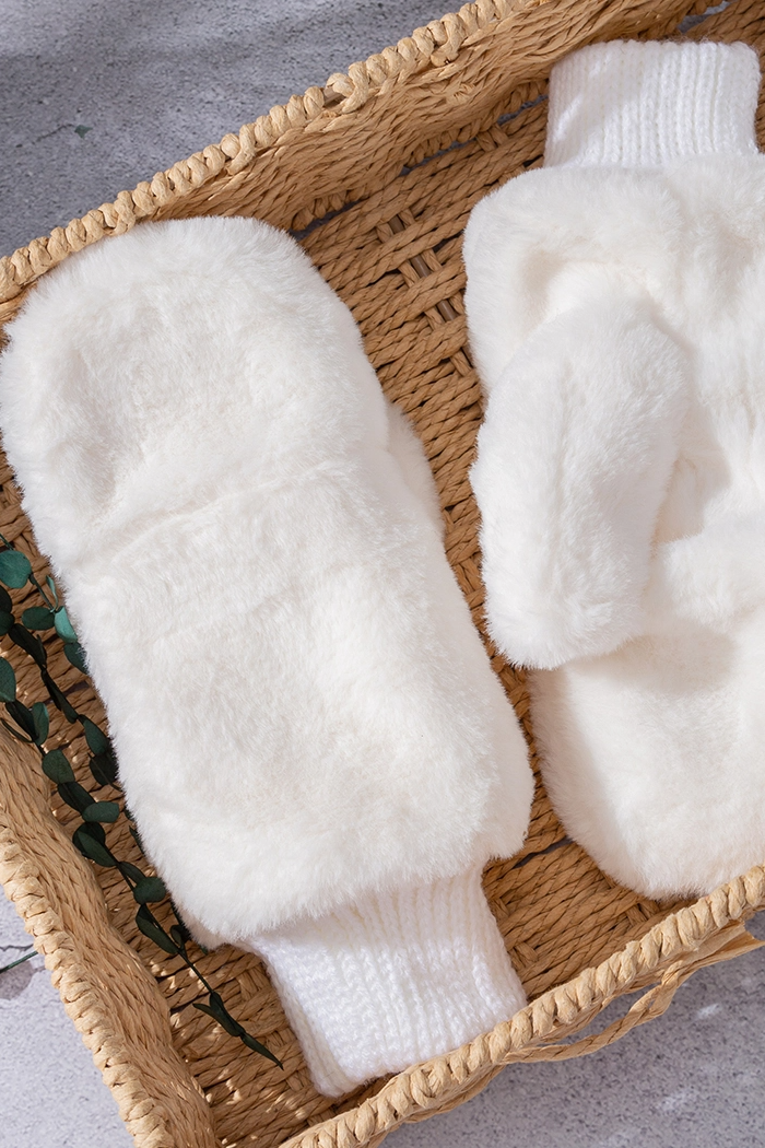 Snow Cozy Mittens with Gathered Wrist Ivory