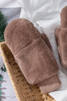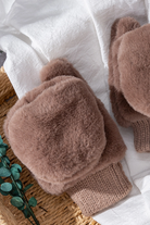 Snow Cozy Mittens with Gathered Wrist in Taupe