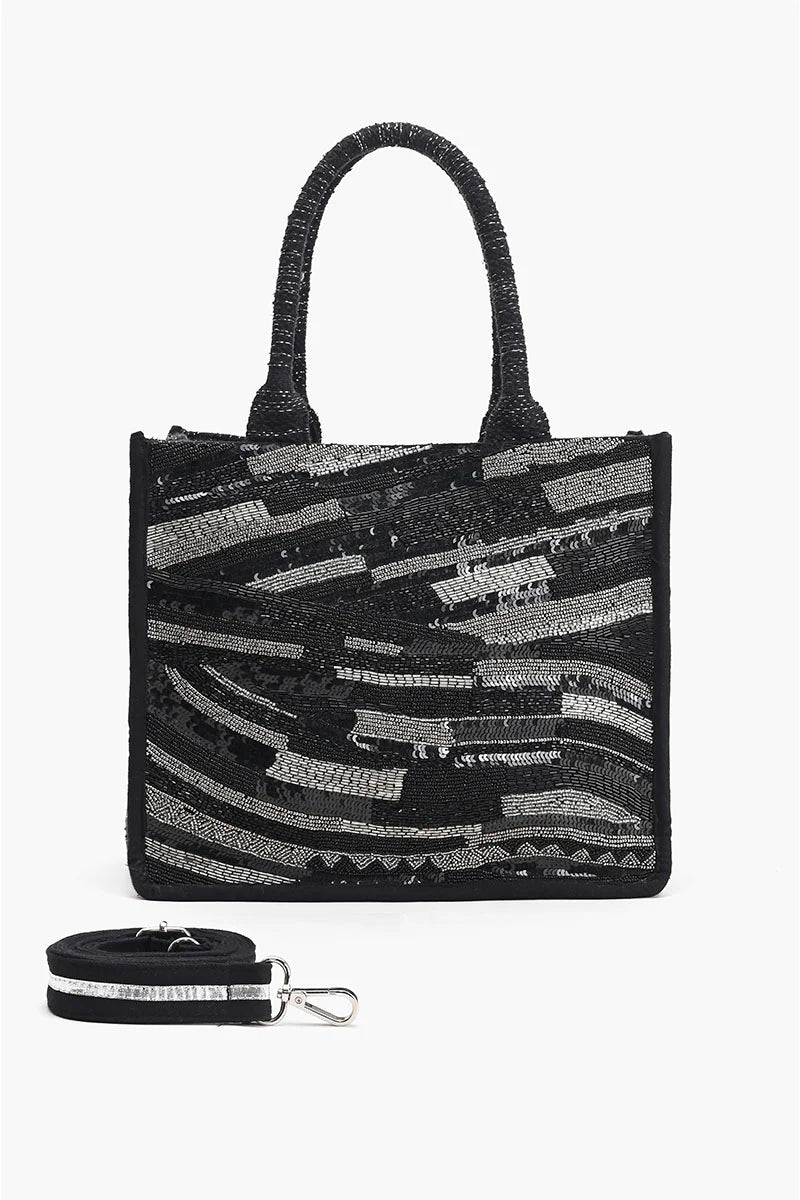 America & Beyond Black Lurex Embellished Tote