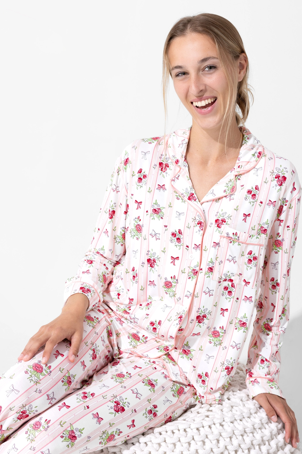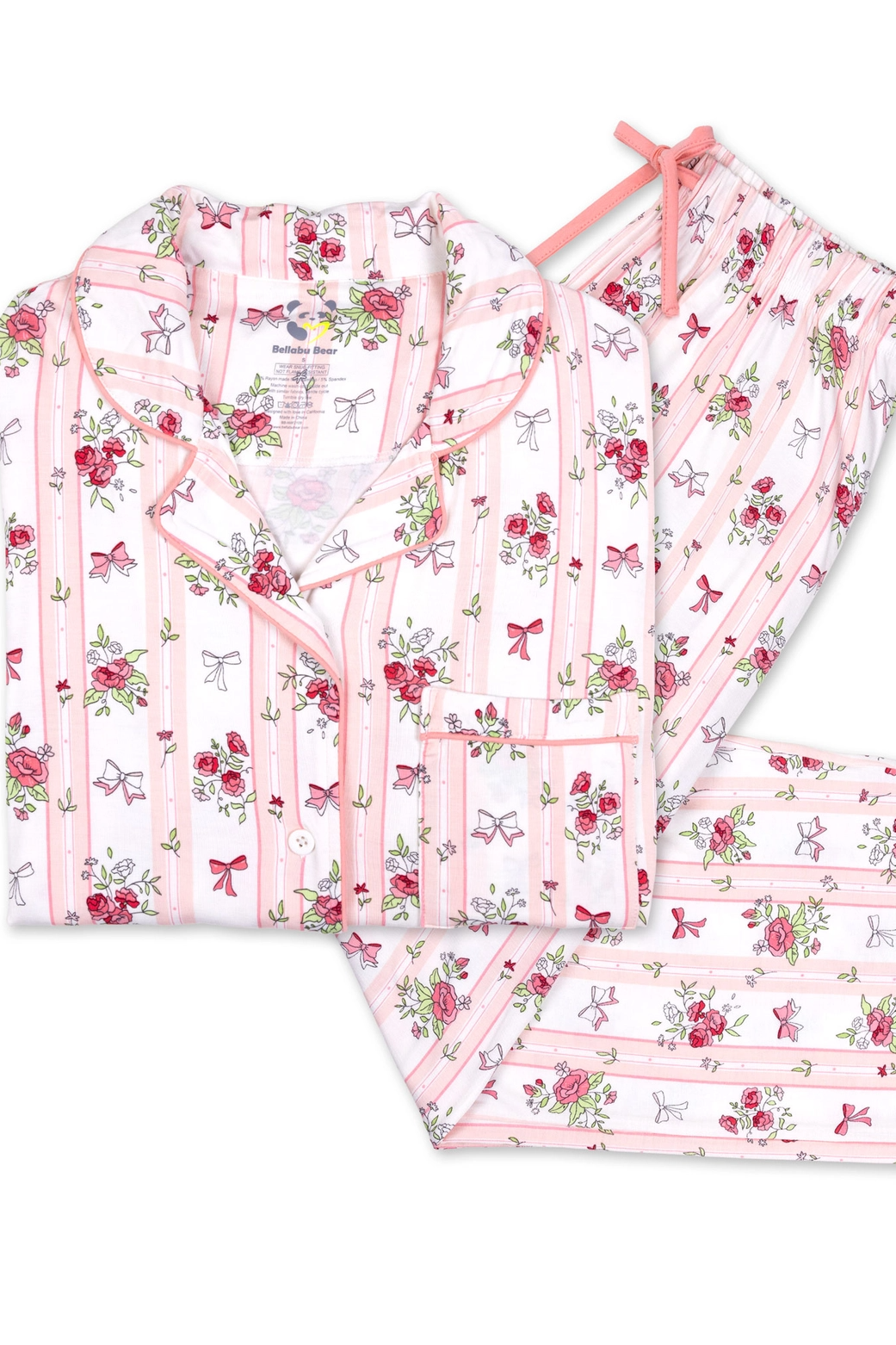 Bellabu Bear Floral Stripes Bamboo Women's Pajama Set