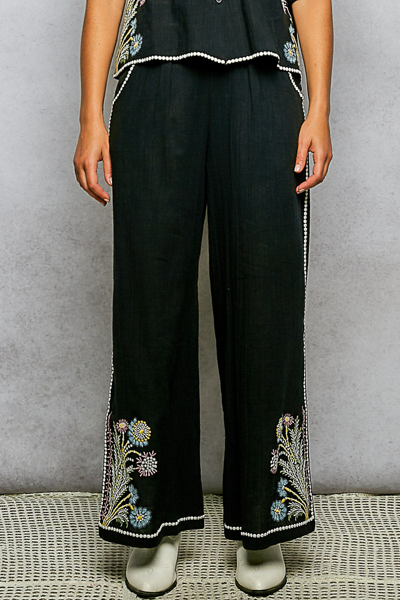 Black Embroidered Floral Pant