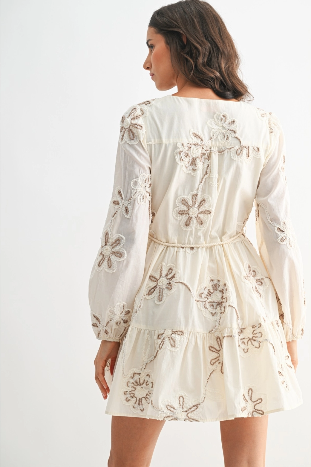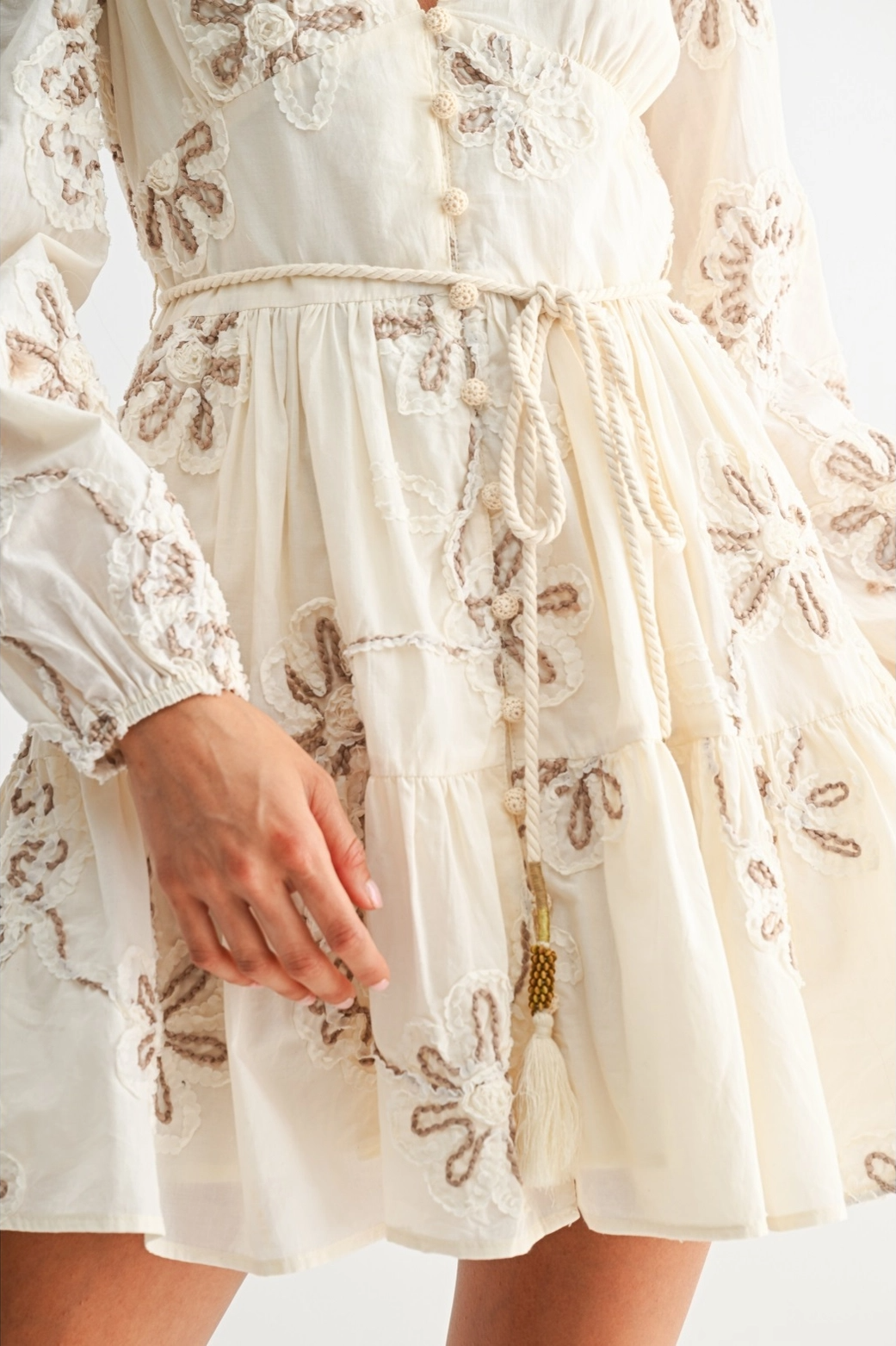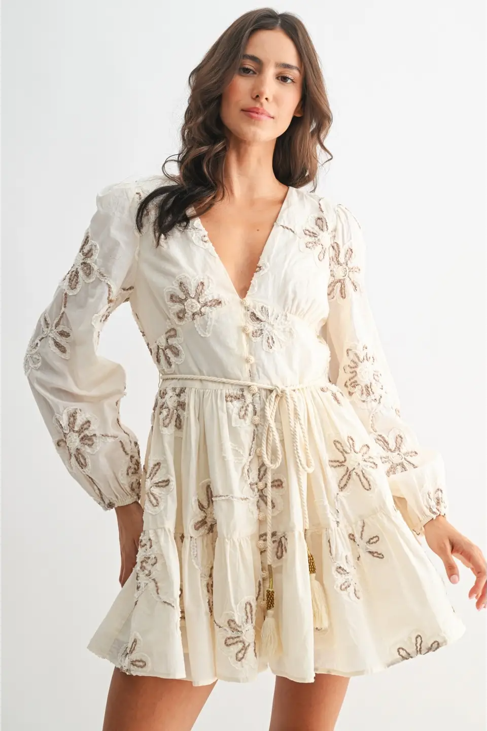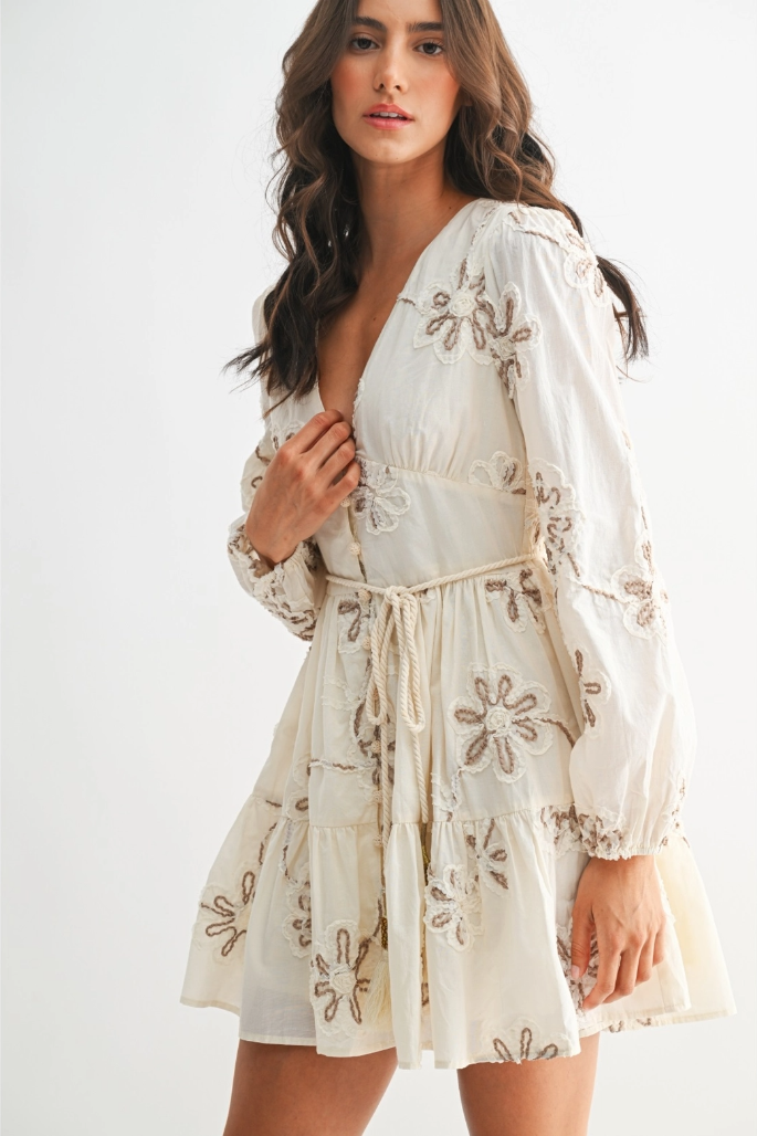 Camellia Floral Embroidered Brown Maxi Dress (SMALL)