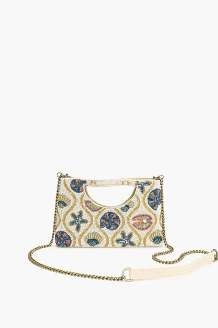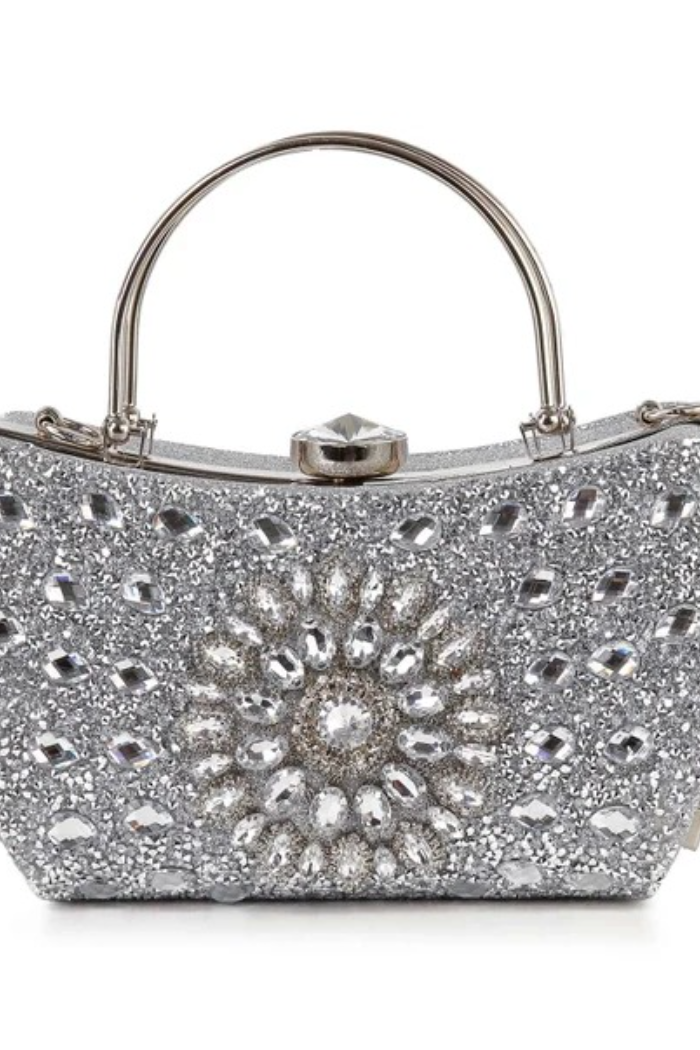 Pizzaz Silver & Gold Flowers Beaded Clutch - Beaded Evening Clutch