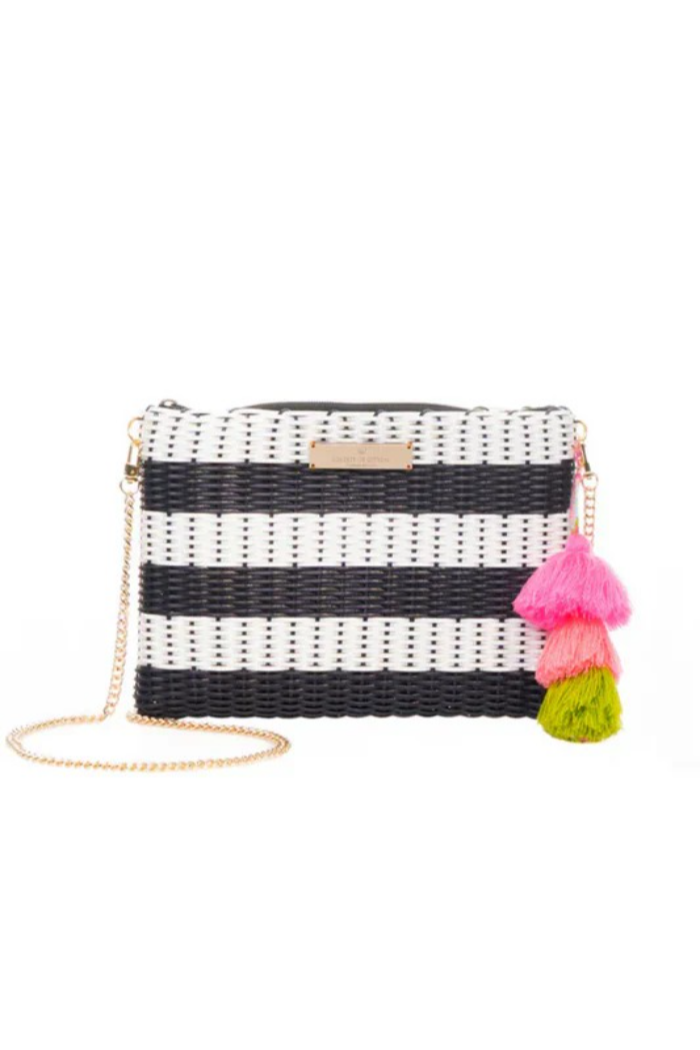 Pizzazz Black & White Sequin & Beaded Floral Clutch