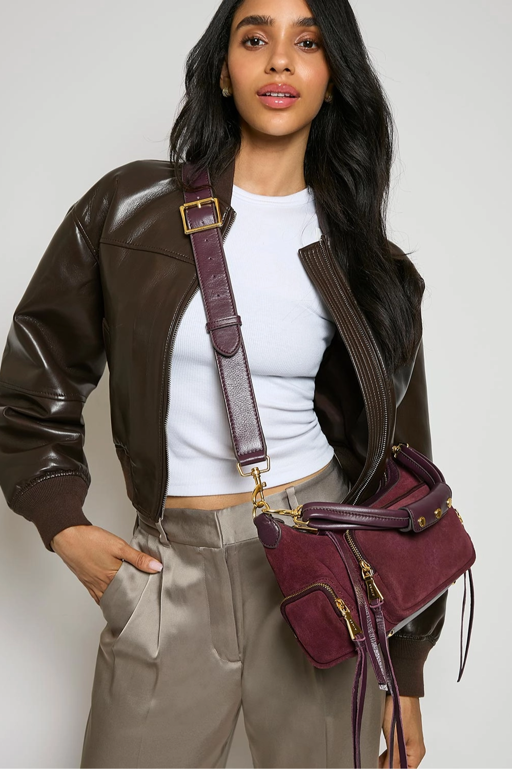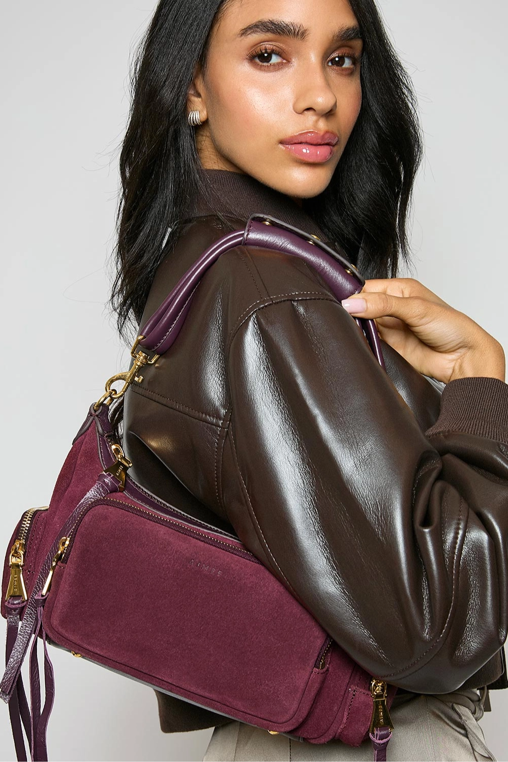 Aimee Kestenberg Away We Go Convertible Cherry Suede Shoulder Handbag