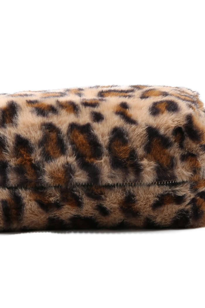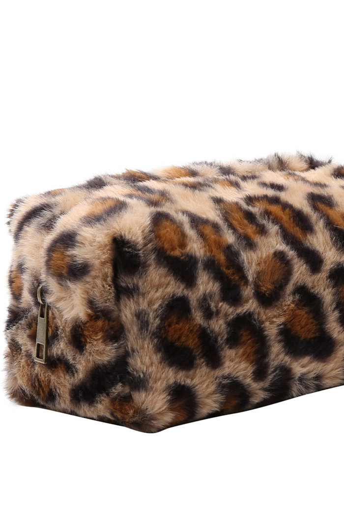 Leopard Pattern Faux Fur Travel Pouch TAUPE