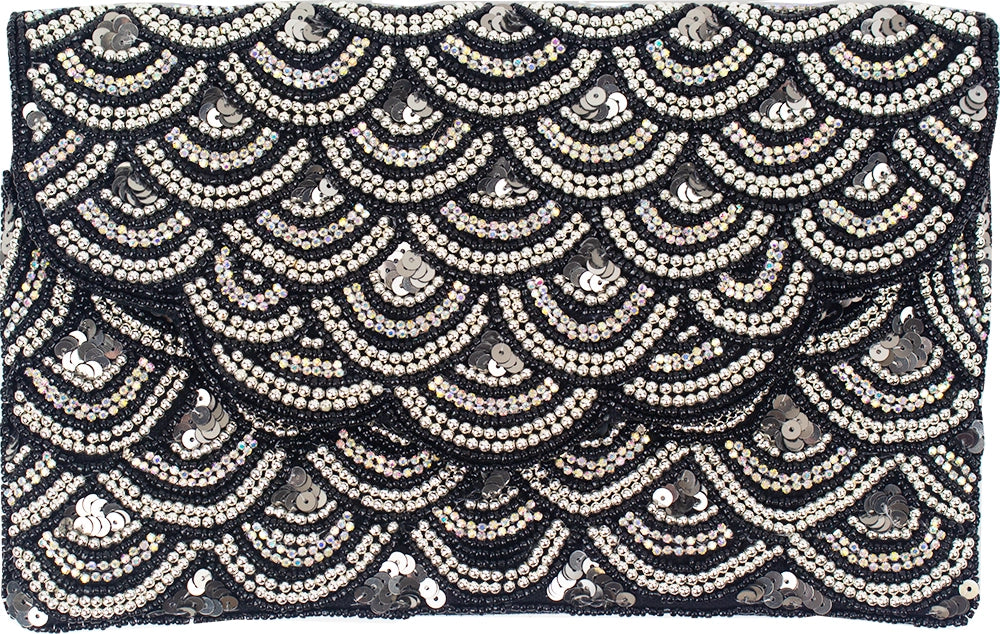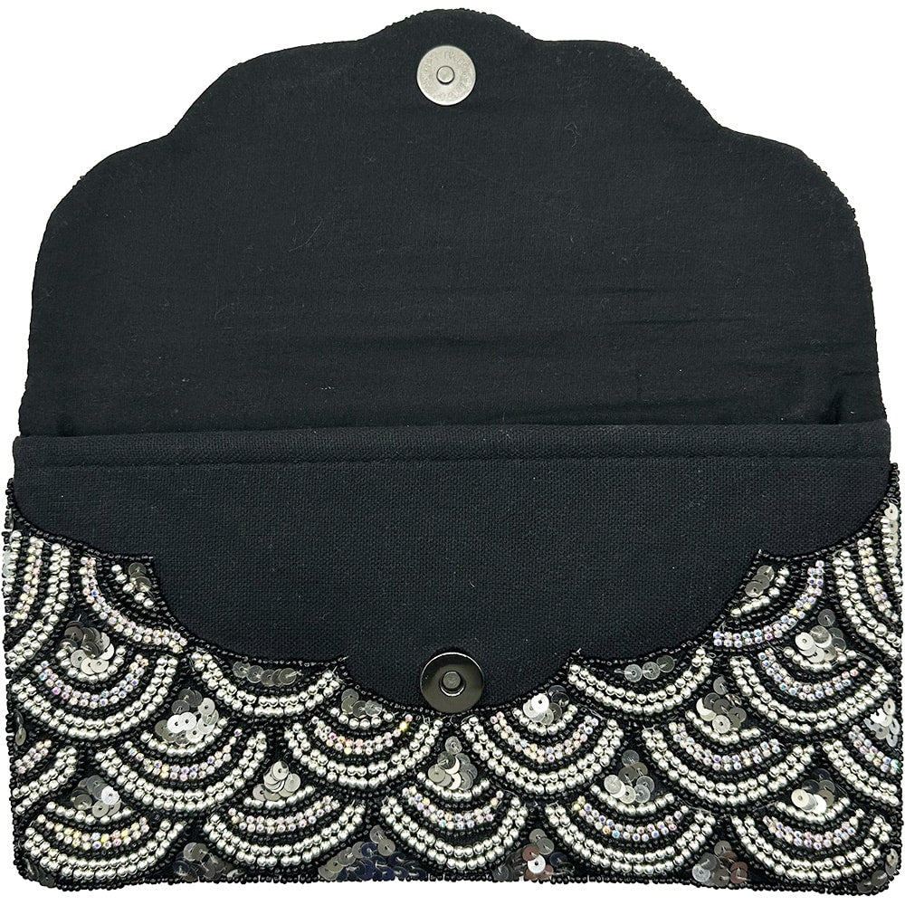 Pizzazz Black & Silver Sequin Beaded Clutch