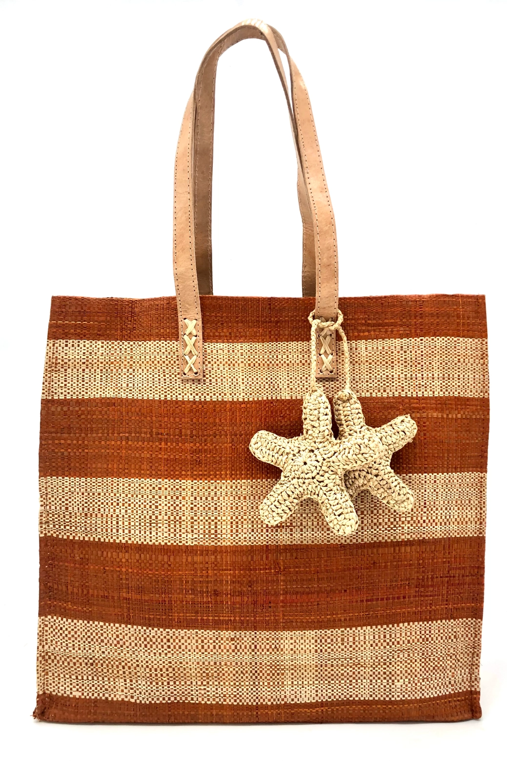 A roomy straw shoulder tote detailed with a crochet starfish charm for seaside style. The Shebobo Whisky Starfish Straw Shoulder Bag with Crochet Starfish Charm pairs woven straw body with long shoulder straps for easy carry. Natural tones and playful starfish accents give it a relaxed beach-vacation feel while still working as an everyday off-duty tote.
