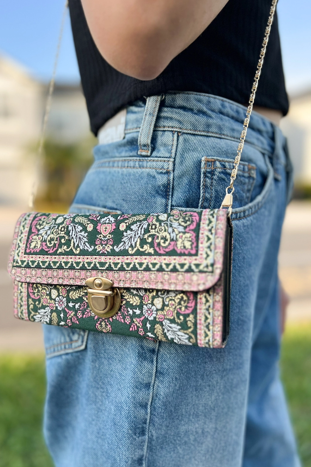 Umays Boho Green & Pink Wallet Crossbody