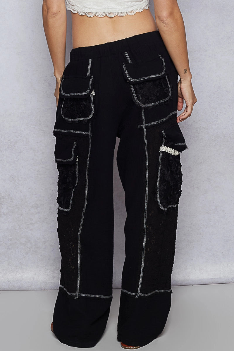 Pol Clothing Black Lace Patch Pants