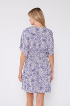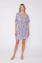 A summer must-have! This mini dress features a deep v-neckline, kimono sleeves, and a smocked drop waistline. With it's captivating lilac floral design, this dress adds a perfect touch of elegance to any summer collection.