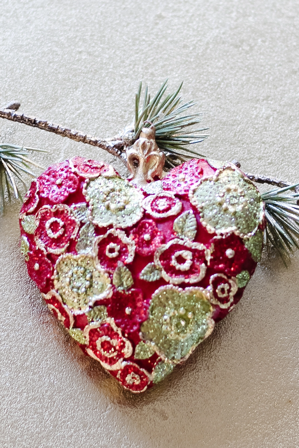 Dekorasyon 3.5" Beaded Red & Citron Heart Ornament