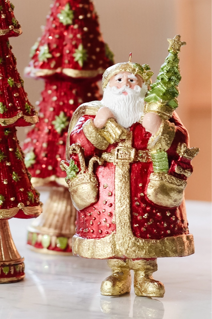 Dekorasyon 5.5" Red & Citron Santa W/Tree Ornament