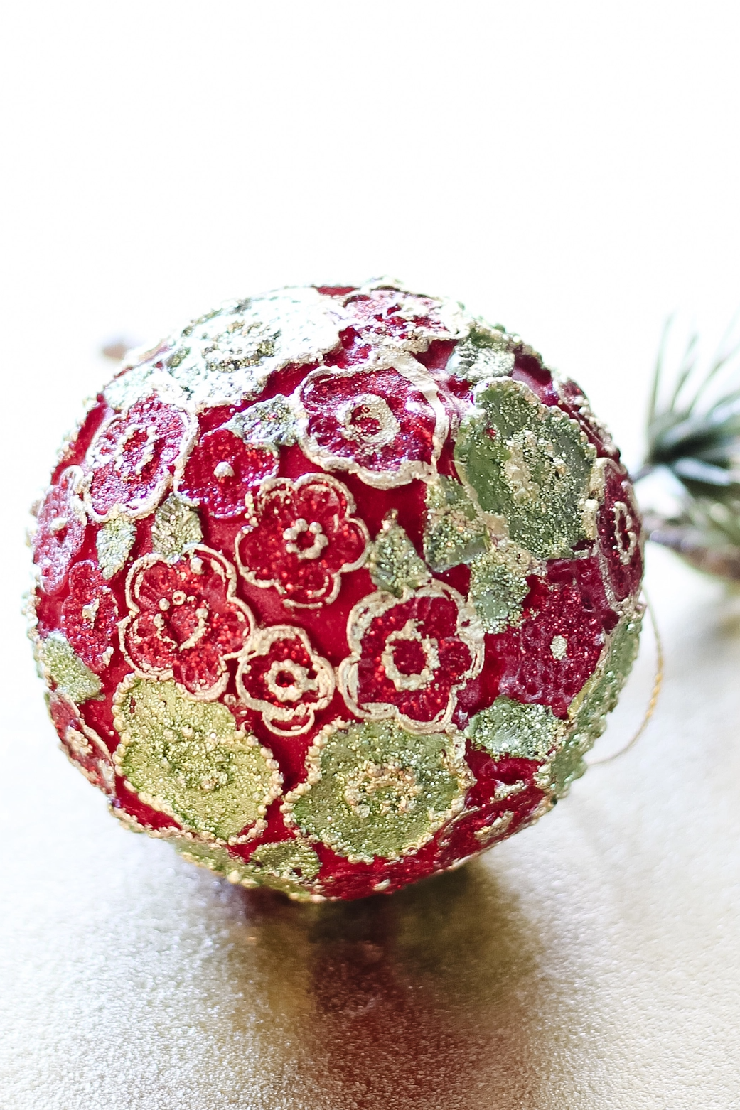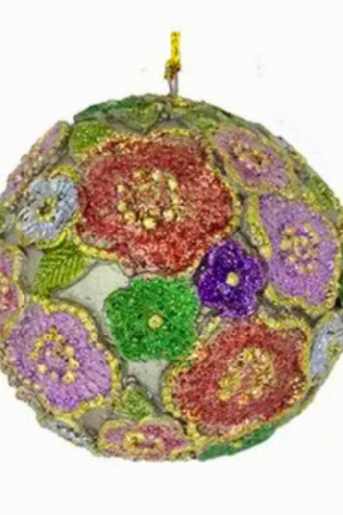 Dekorasyon 3" Beaded Multi Floral Ball Ornament