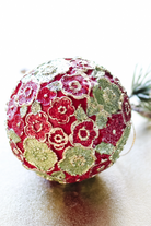Timeless and traditional ball shape ornament in a beautiful floral pattern. Featuring the Beaded Petals pattern with intricate details and in the classic red and citron color combination. This keepsake ornament is designed to be cherished and displayed year after year.