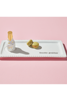 Enjoy Mud Pie's Light Up Ceramic Serving Tray that features an insert where our decorative figurines can sit and be interchanged for all seasons. "Goodie grabber" is written on the bottom right corner of the tray where candies and other foods can be displayed just above.