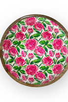 Brightly patterned and practical, the My Casita Roses 12" Round Serving Tray is perfect for serving appetizers or styling a tabletop. The tray features a vibrant pink rose print set in a round form with a wood-tone rim for a warm, casual look. My Casita brings a playful, garden-inspired aesthetic that livens up brunches and everyday gatherings. Lightweight and decorative, this tray works equally well for serving or as a centerpiece on a coffee table.