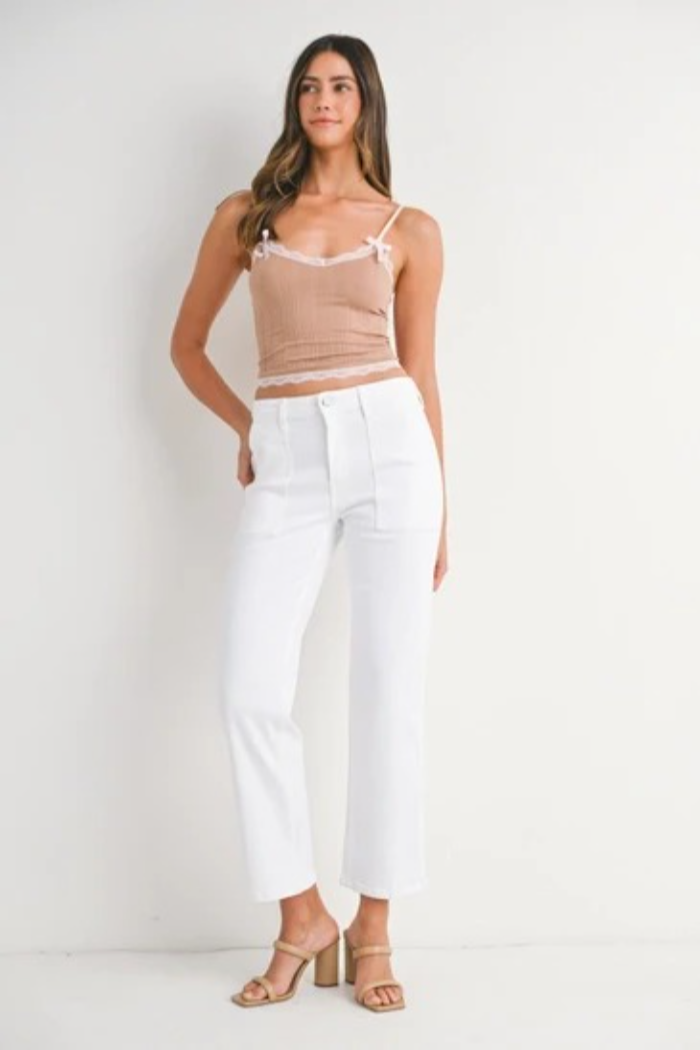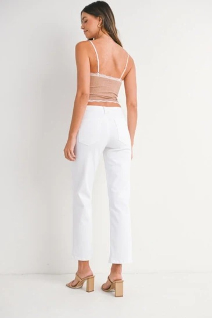 These jeans sit just below the waist for a flattering, secure fit perfect for everyday wear. The straight-leg cut provides a relaxed yet tailored look, complemented by stylish, functional utility pockets.