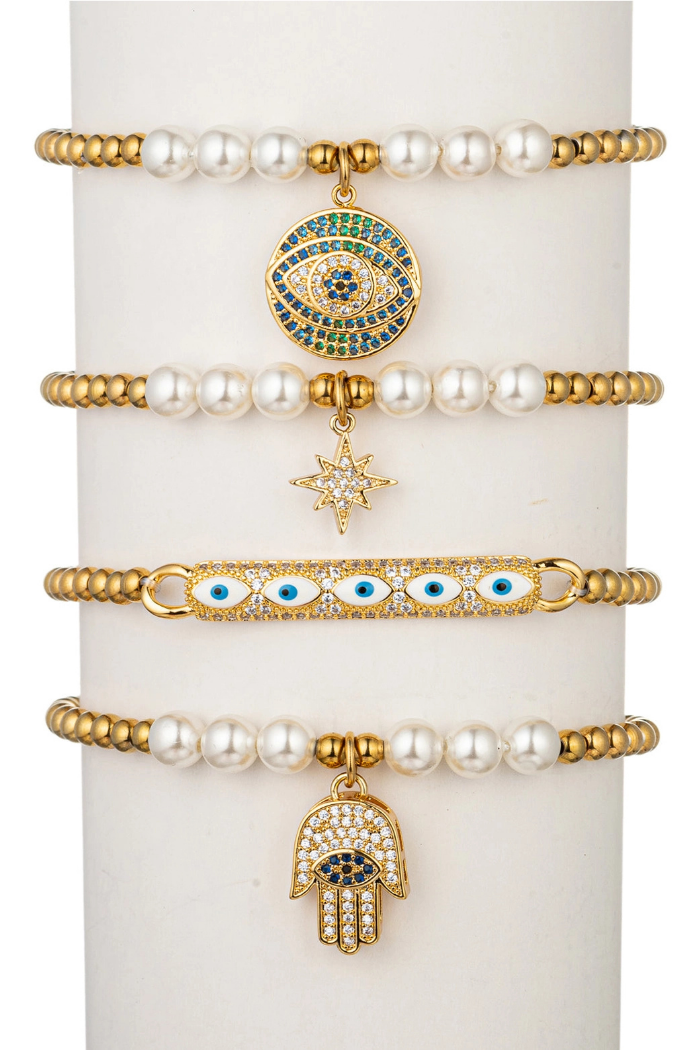 Hamsa & Eye 4pc Titanium Gold Plated Bracelets