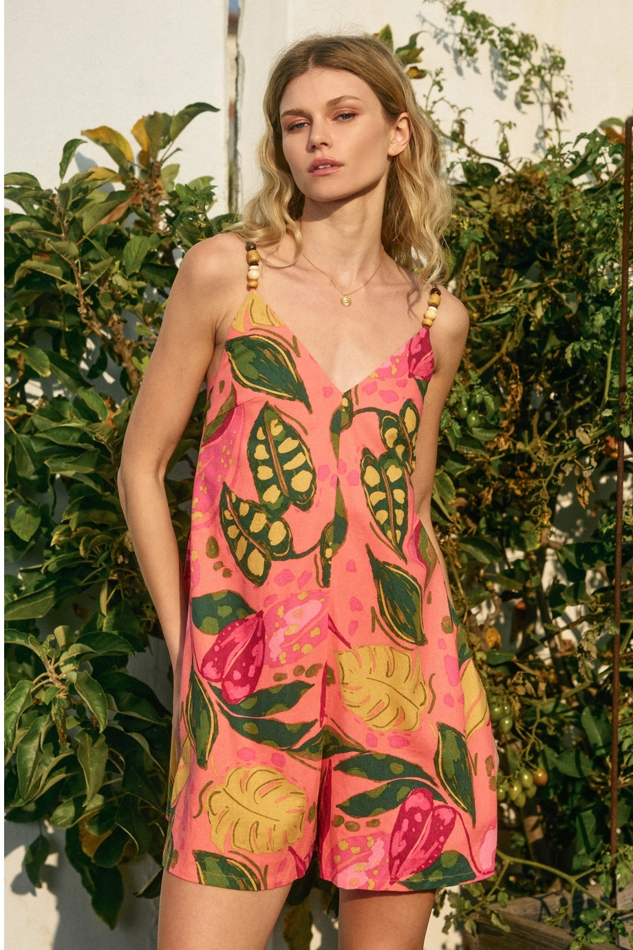 Dress Forum Isla Palma Button Up Rattan Belt Romper