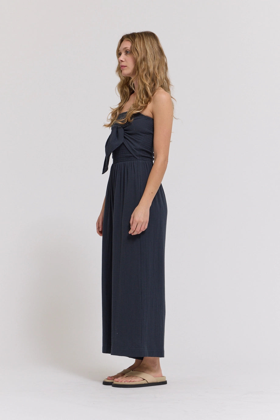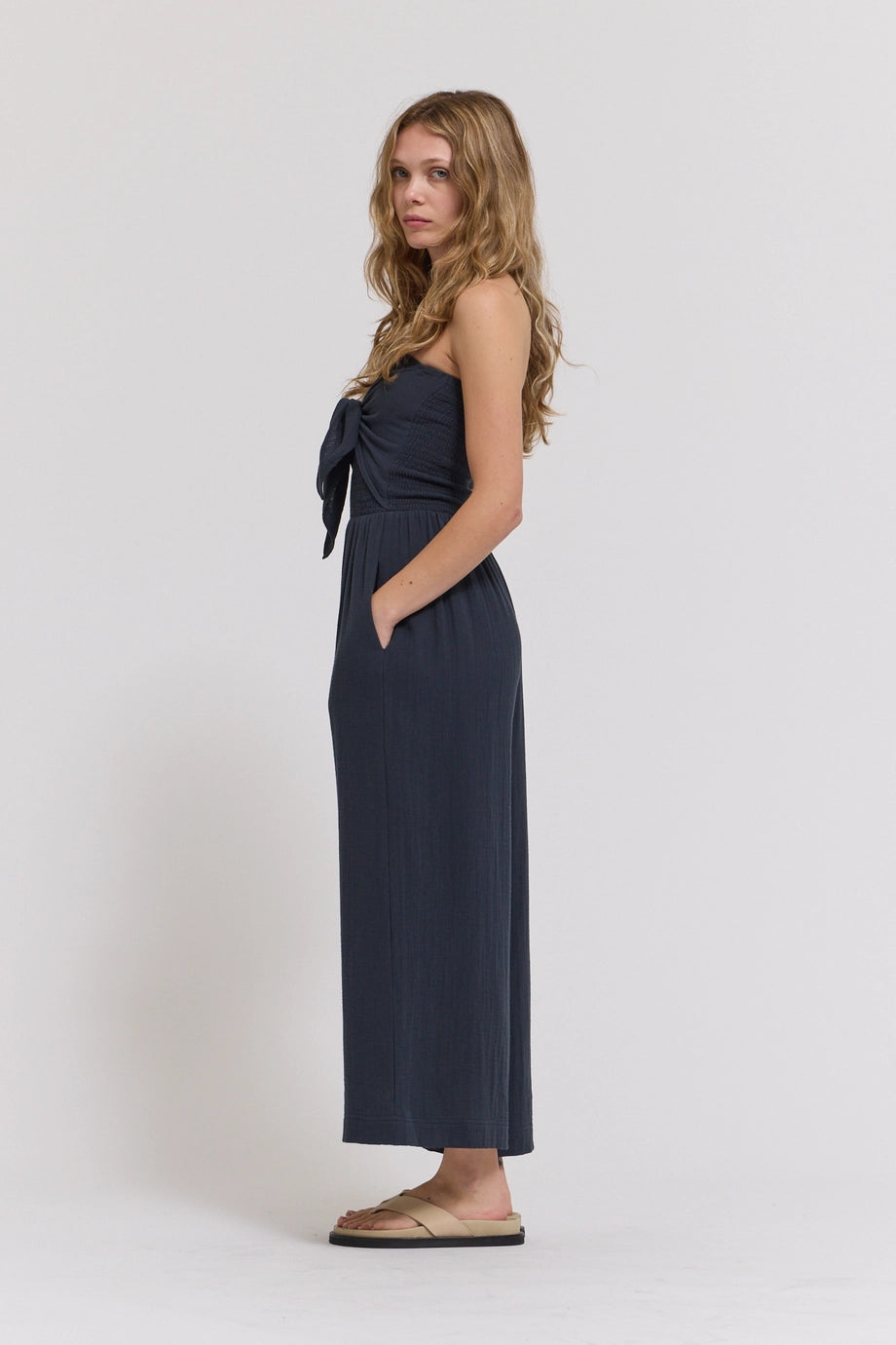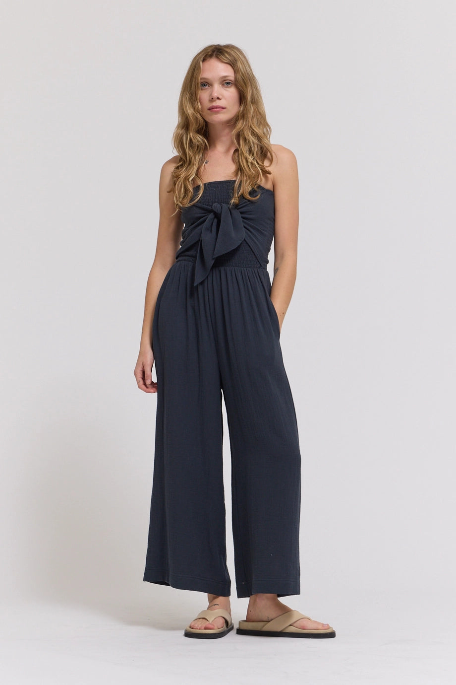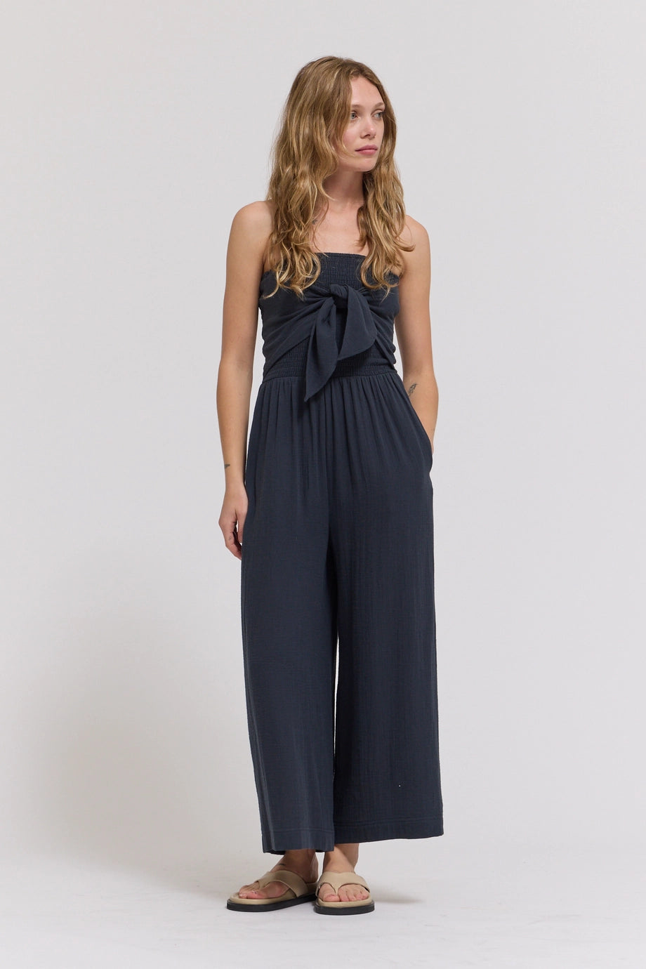 Grade & Gather Midnight Tie Front Gauze Jumpsuit