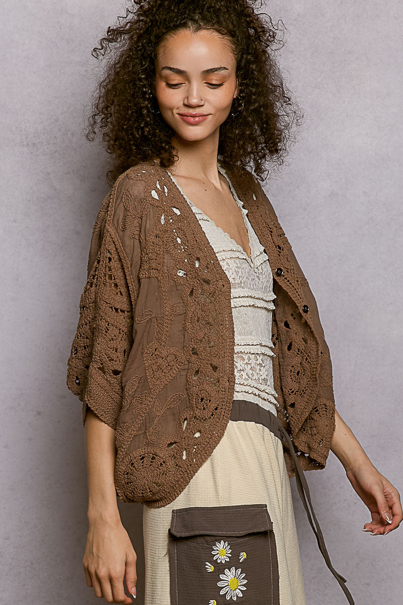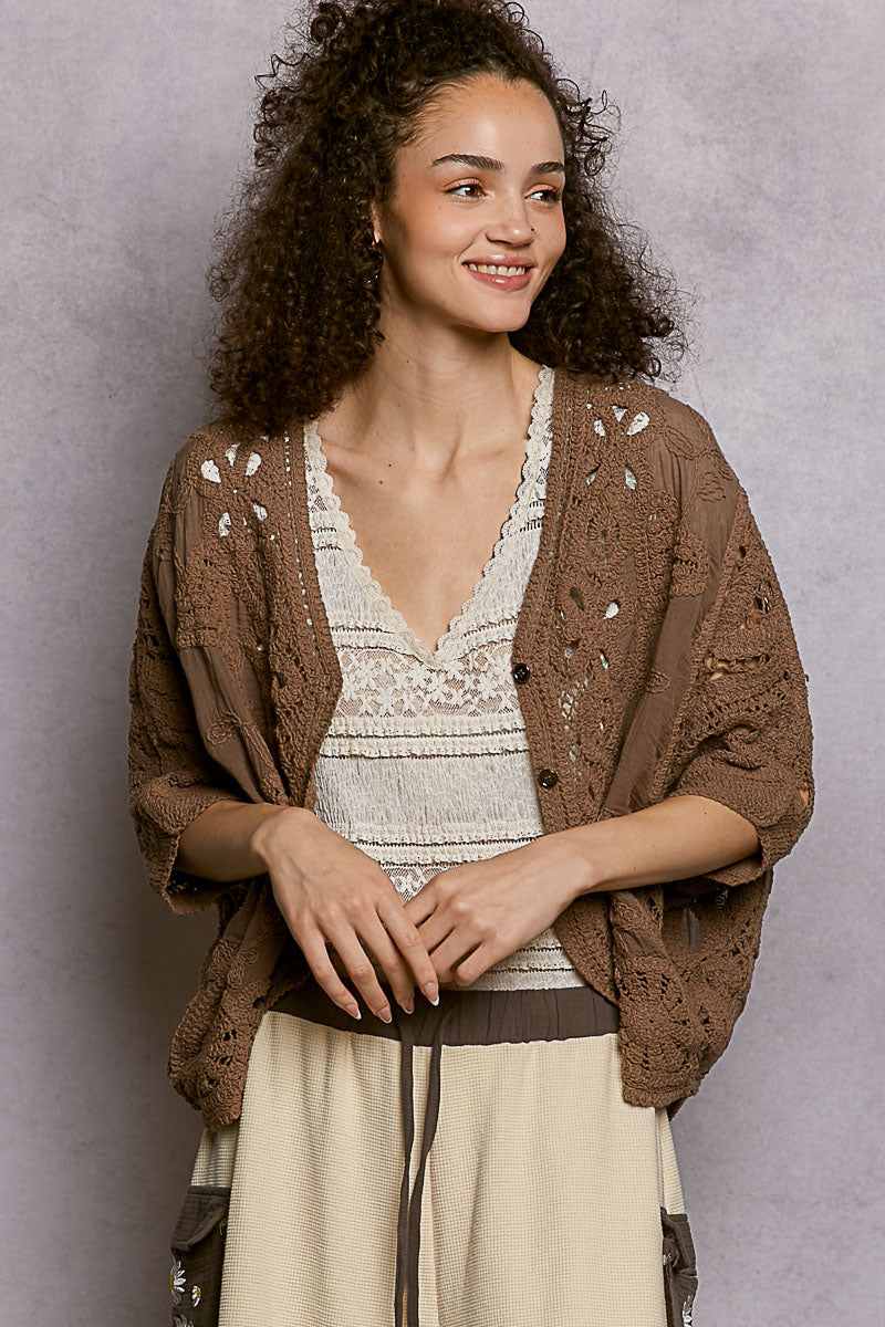 POL Clothing Cocoa Powder Crochet Cardigan
