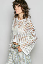 A breezy crochet sweater in ivory with a glittering star and pearl embellishments, designed in a relaxed, slightly cropped silhouette. The POL Ivory V-Neck Crochet Star & Pearl Sweater features open-knit construction and wide sleeves for a laid-back, bohemian feel. POL designed this piece to layer over camisoles or swimsuits for warm-weather styling. Lightweight and airy, it reads casual and vacation-ready.