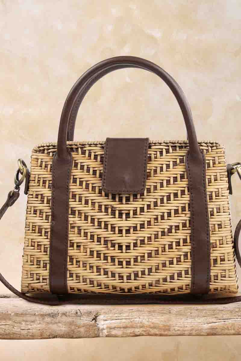 The Winding Road Medium Rattan Handbag With Leather Trim