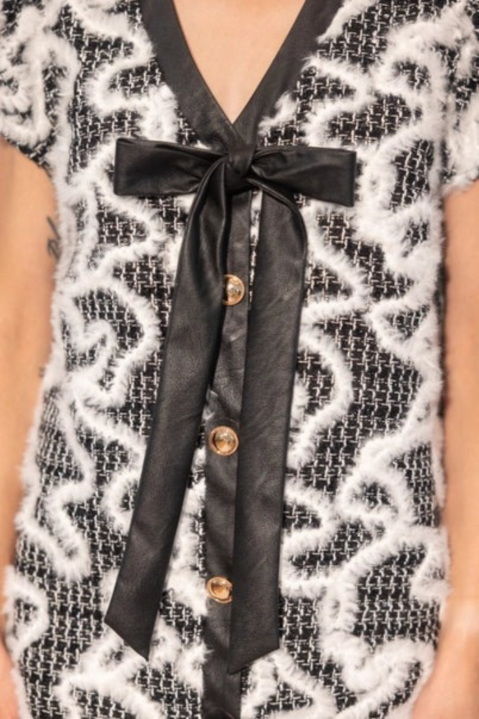 POL Off-White V-Neck Short Sleeve Crochet Contrast Solid Top