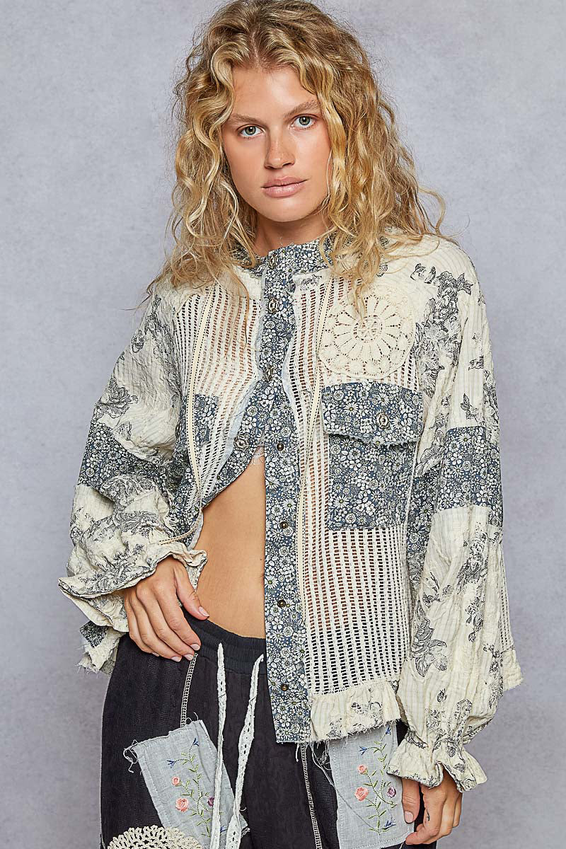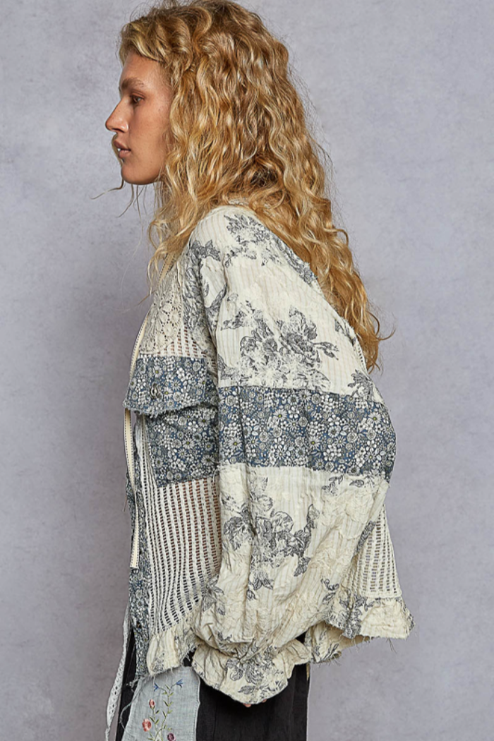POL Balloon Sleeve Crochet Embroidered Hoodie Jacket