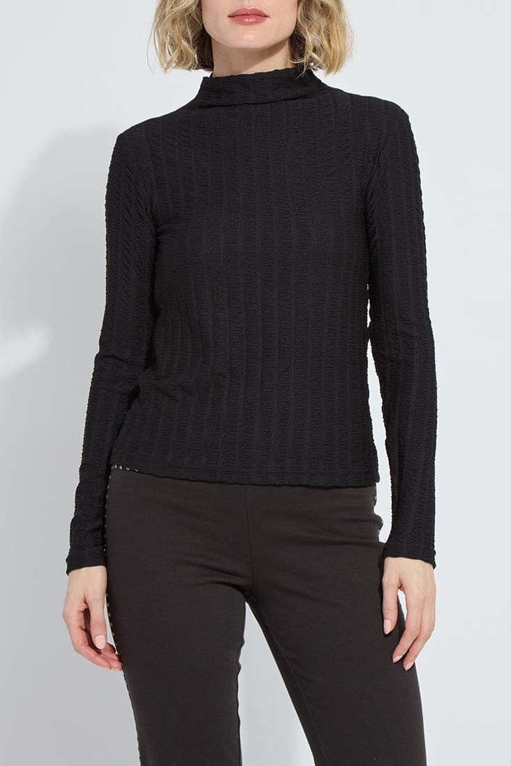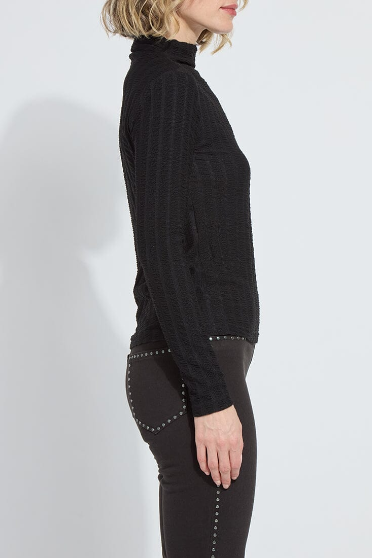 Lysse Isaura Funnel Neck Smocked Black Top
