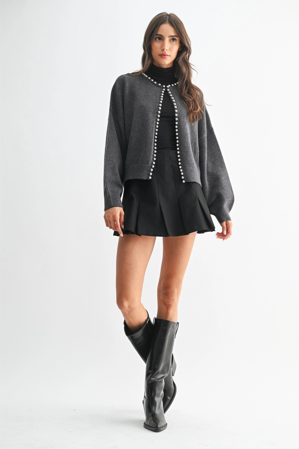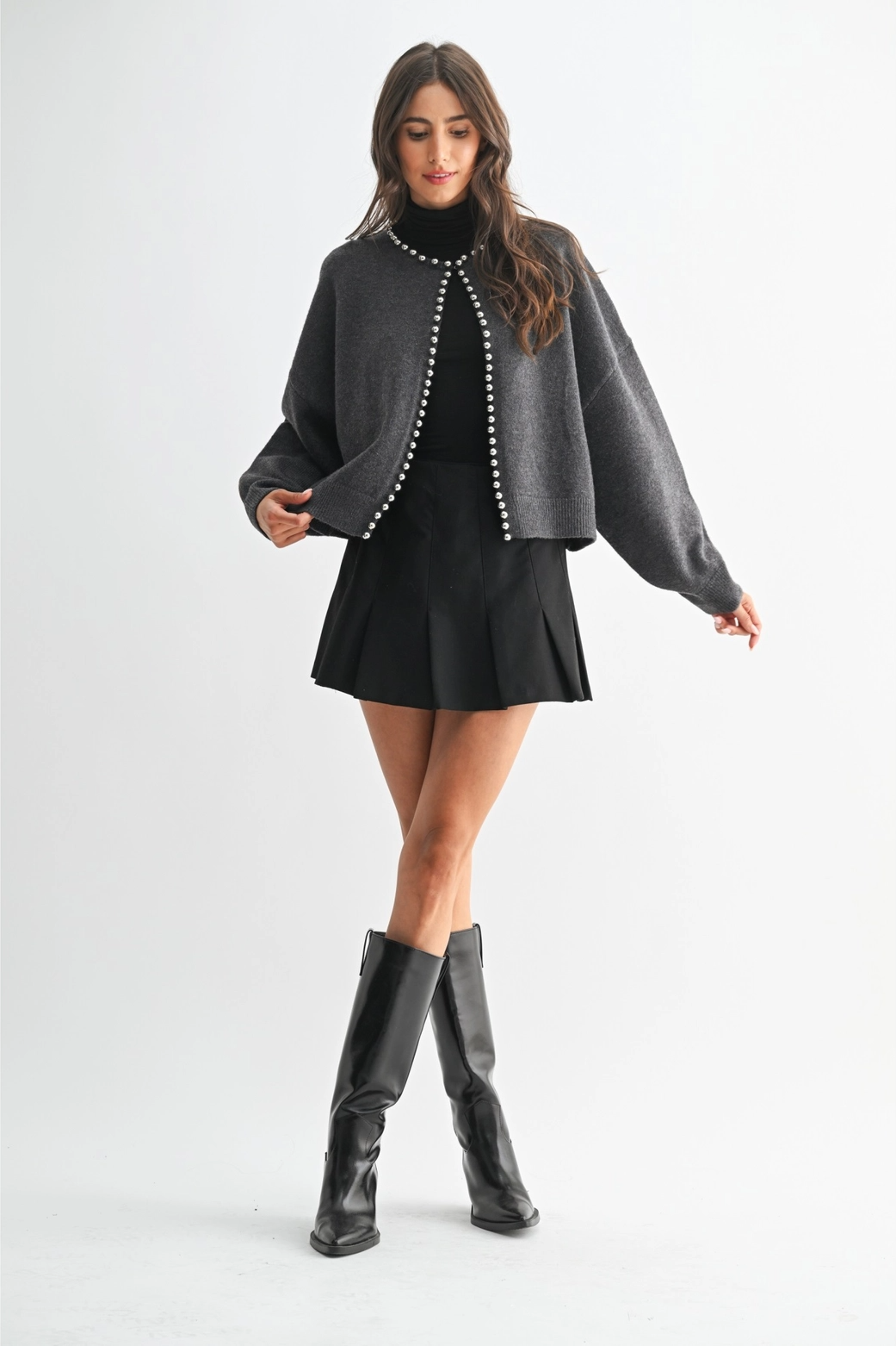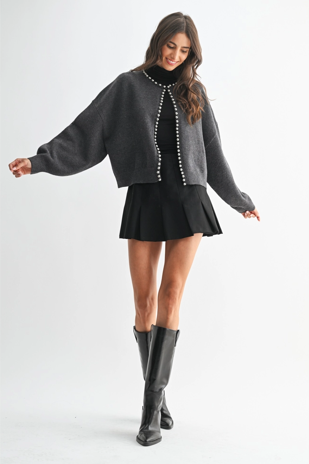 Discover a fusion of sophistication and comfort with our Elegant Charcoal Knit Cardigan. Designed for the modern professional, this piece effortlessly blends luxury with everyday practicality, perfect for both business meetings and sophisticated soirees.