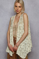 POL Sleeveless Floral Print Pearl Detail Open Cardigan