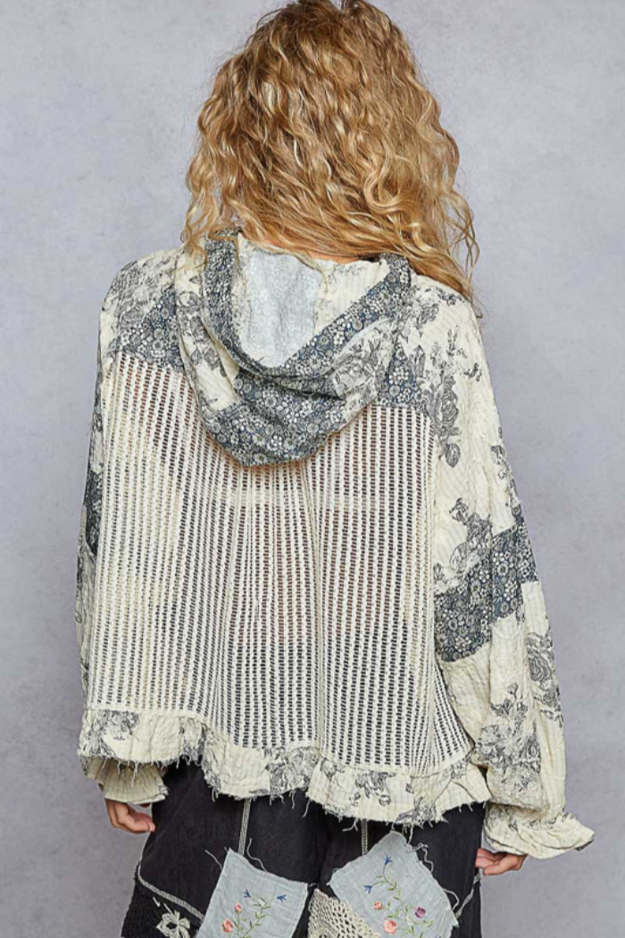 POL Balloon Sleeve Crochet Embroidered Hoodie Jacket