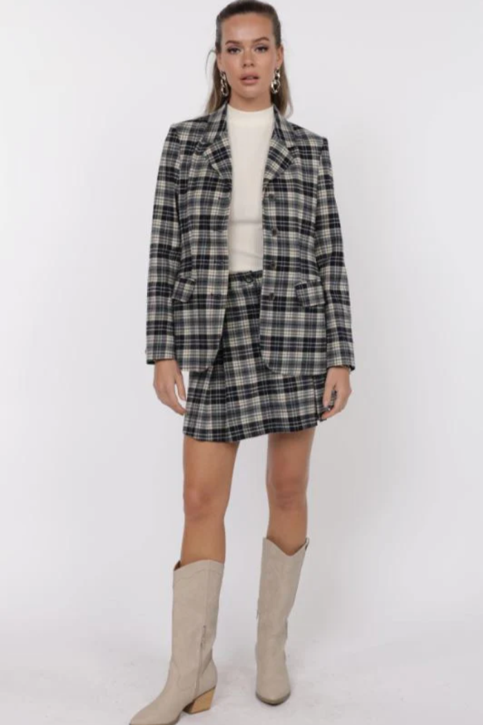 Sage The Label Wilson Navy & Cream Plaid Blazer