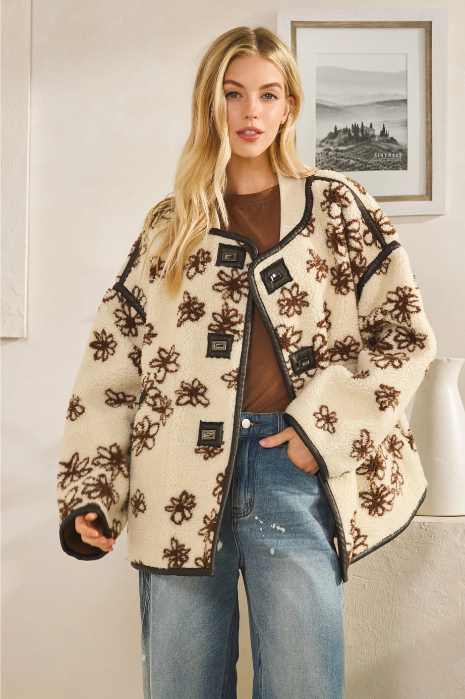 POL Cream & Yellow Floral Crochet Hoodie Jacket