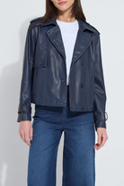 Made from garment washed Lightweight Vegan Leather for depth of color and a vintage look, the Evonne Oversized Cropped Trench Coat is a timeless jacket you’ll go to again and again. Offering comfortable 4-way stretch with a vintage softness, the Evonne is double breasted and features functional side pockets, sleeve tabs, shoulder tabs, a trench collar and back seam. Machine washable, this Vegan Leather jacket is half lined inside with Stretch Satin and features faux horn buttons and Charcoal topstitching. Perfect for every season, we love the Evonne Oversized Trench styled with the Ivette Pleated Balloon Sleeve Blouse and the Zaina Ponte Pleated Trouser.