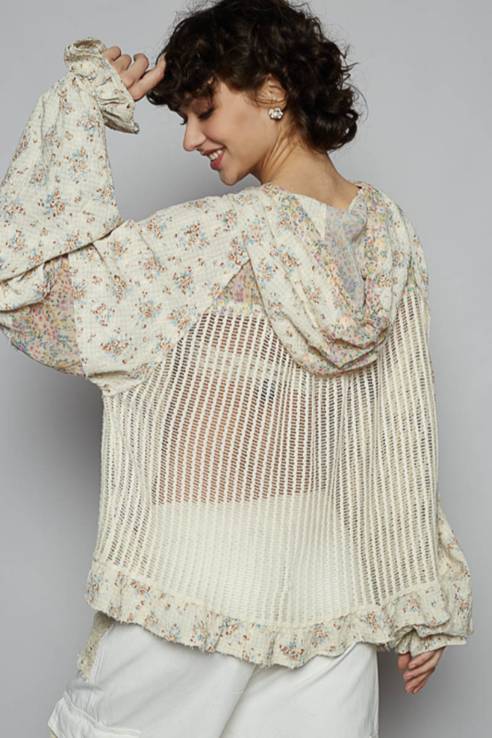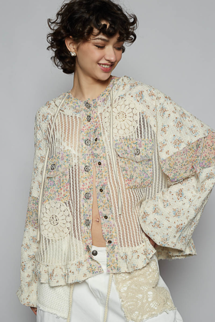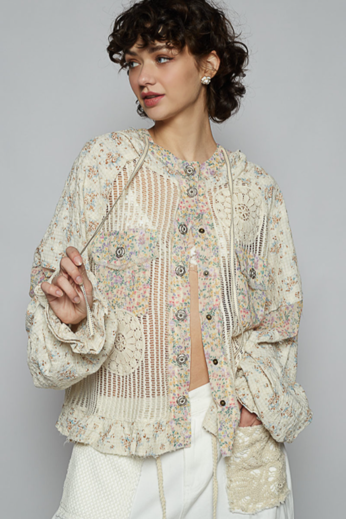 POL Cream & Yellow Floral Crochet Hoodie Jacket