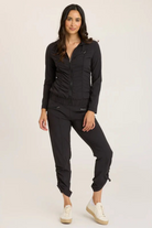 The **XCVI Black Momentum Jacket** is a sleek, lightweight layer designed for everyday versatility. Crafted from breathable stretch fabric, it features a zip-front closure, subtle ruching, and a flattering fit that moves with you. Whether you're dressing it up or keeping it casual, this jacket adds effortless style to any outfit.