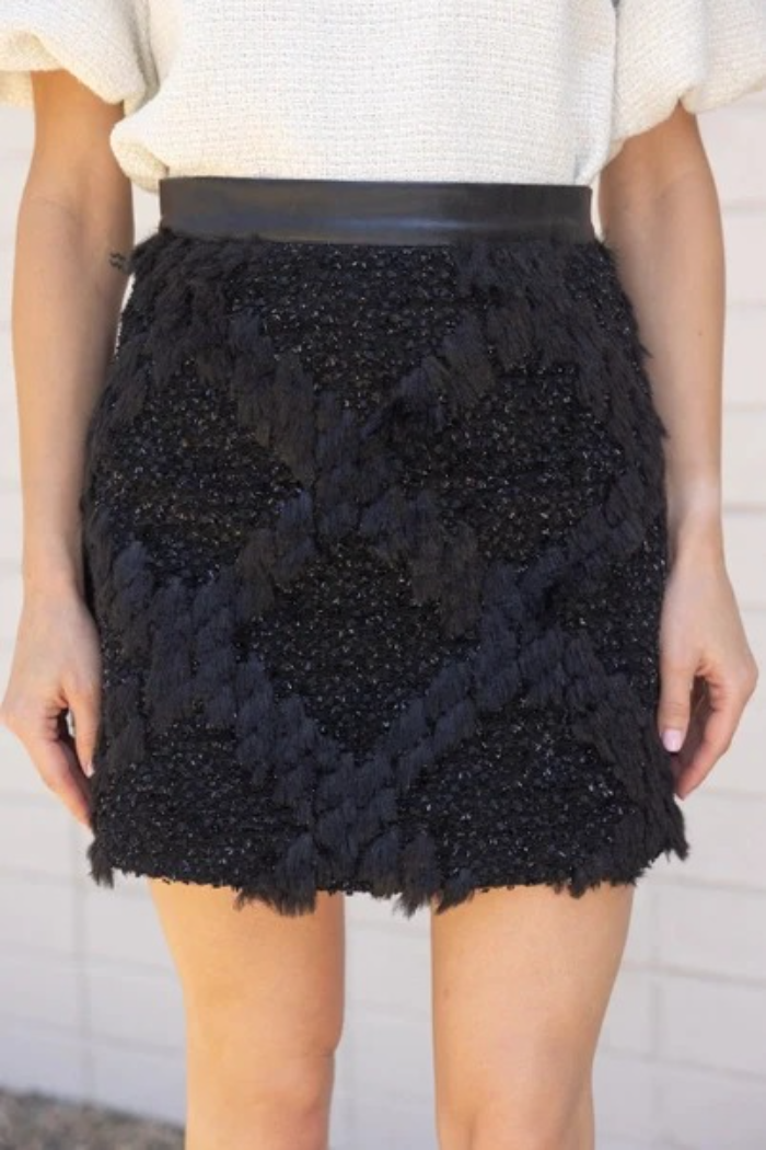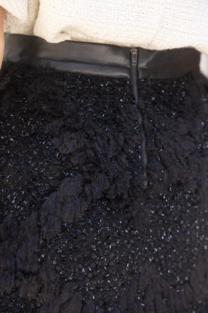 Voy Black Furry & Lthr Skirt