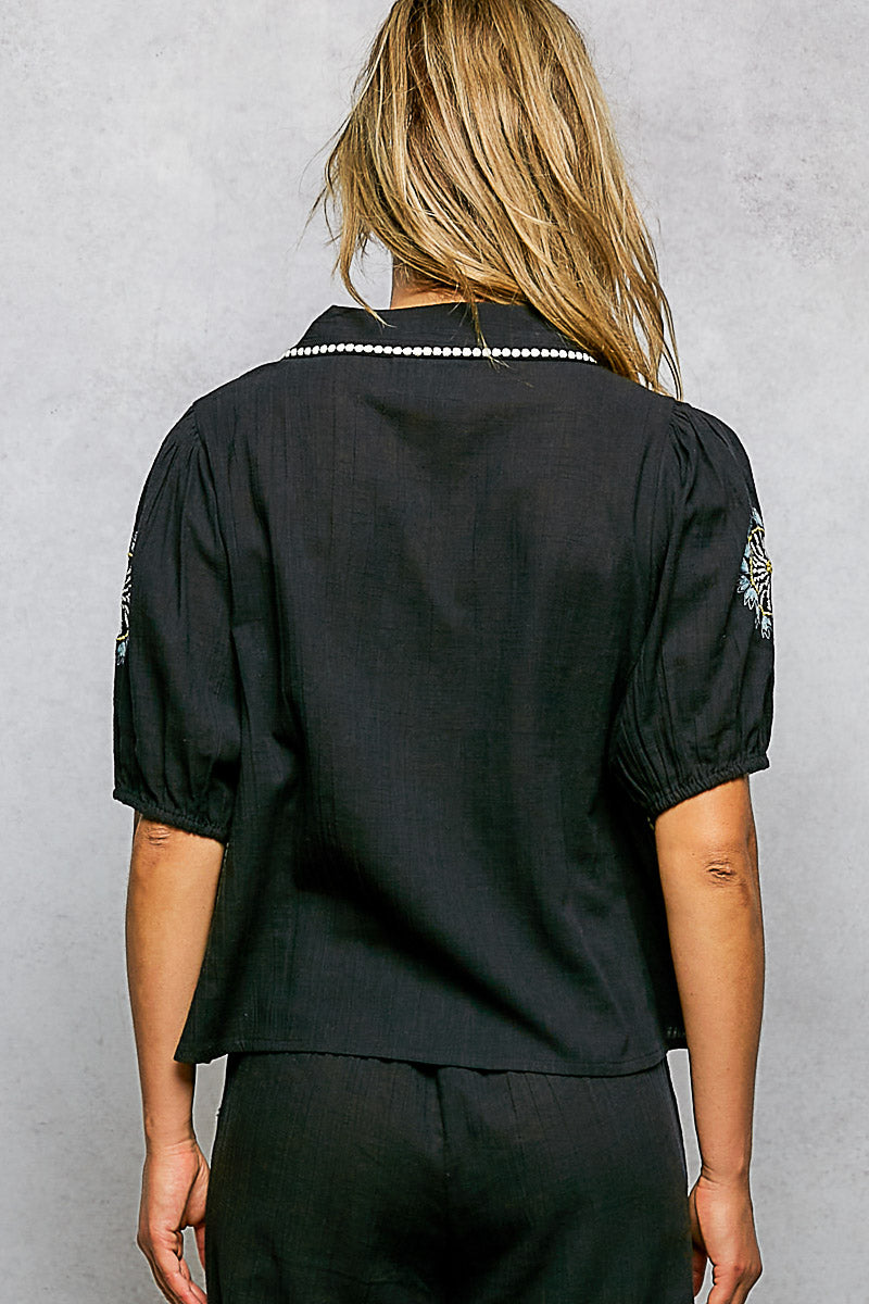 Embroidered Black Woven Shirt