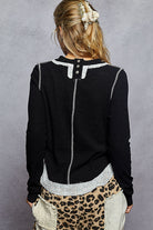 A ribbed long-sleeve top with raw-edge lace trim for a lived-in, feminine look. The Black Rib & Raw Edge Long Sleeve Top pairs fitted rib knit with vertical and collar lace accents for subtle texture. POL infuses bohemian detailing into an everyday crew-neck silhouette that layers easily from day to night.