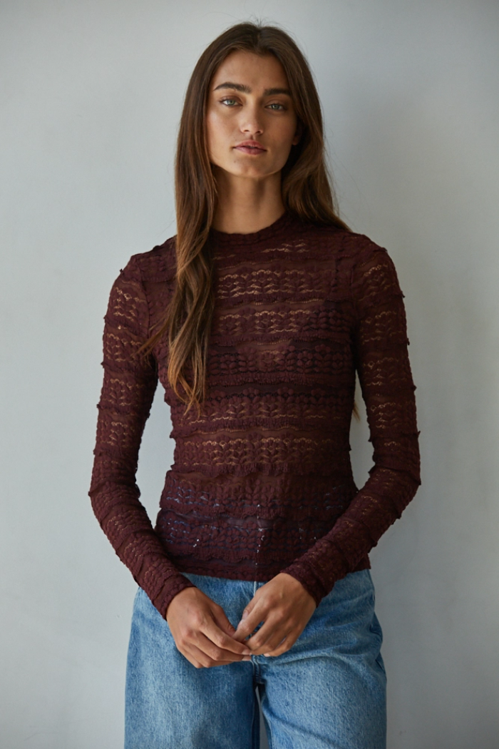 By Together Dark Burgundy Lace See Through Mock Top (Medium)